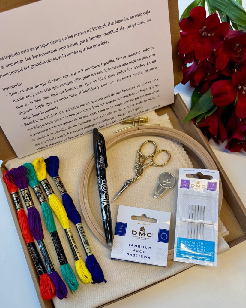 Descripción: El kit que lleva el nombre del estudio está diseñado tanto para aquellas personas que se lanzan por primera vez a bordar como para aquellas que ya le han cogido el gusto y quieren invertir en herramientas y materiales de buena calidad.